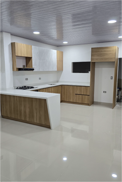 Trabajamos muebles en madecor Rh, con un variado catálogo de color. Encimeras en mármol, granitos, quarztone y piedras sinterizadas. Complementamos nuestros diseños con vidrio y estructuras metálicas, entre otros materiales.